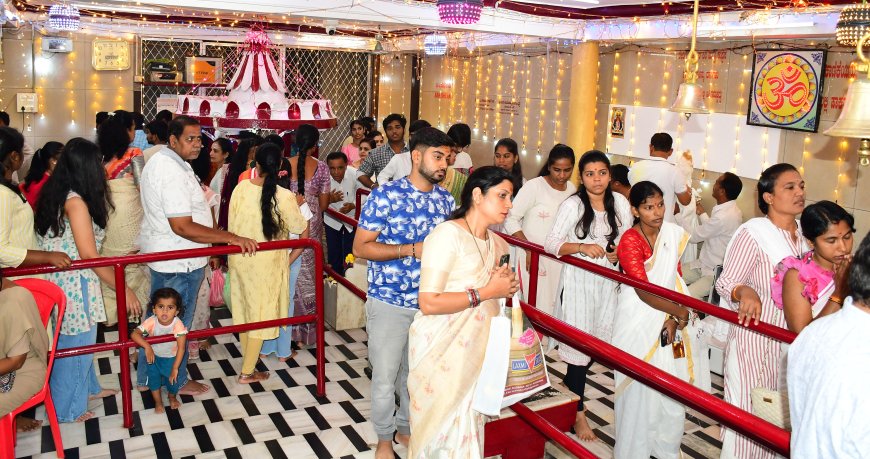 ಕಲಬುರಗಿ: ನಗರದ ವಿವಿಧ ಬಡಾವಣೆಗಳಲ್ಲಿ ಆದಿಶಕ್ತಿ ಅಂಬಾಭವಾನಿಯವರ ಪ್ರಥಮ ಘಟಸ್ತಾಪನೆಯಿಂದ ನಗರವೇ ಭಕ್ತಿ ಸಂಭ್ರಮದಿಂದ ಕಂಗೊಳಿಸಿದೆ. ಎರಡನೇ ದಿನದ ದೇವಿ ದರ್ಶನಕ್ಕಾಗಿ ಭಕ್ತರು ಬಗೆಬಗೆಯ ಬಣ್ಣದ ಉಡುಪುಗಳನ್ನು ಧರಿಸಿ ದೇವಸ್ಥಾನಗಳಿಗೆ ಧಾವಿಸಿದರು. ಮಹಿಳೆಯರು ಸಾಂಪ್ರದಾಯಿಕ ವಸ್ತ್ರಗಳಲ್ಲಿ, ಯುವತಿಯರು ನವೀನ ಶೈಲಿಯ ವೇಷಭೂಷಣಗಳಲ್ಲಿ ಹಾಗೂ ಪುರುಷರು ಧಾರ್ಮಿಕ ಉಡುಪಿನಲ್ಲಿ ಕಾಣಿಸಿಕೊಂಡರು.