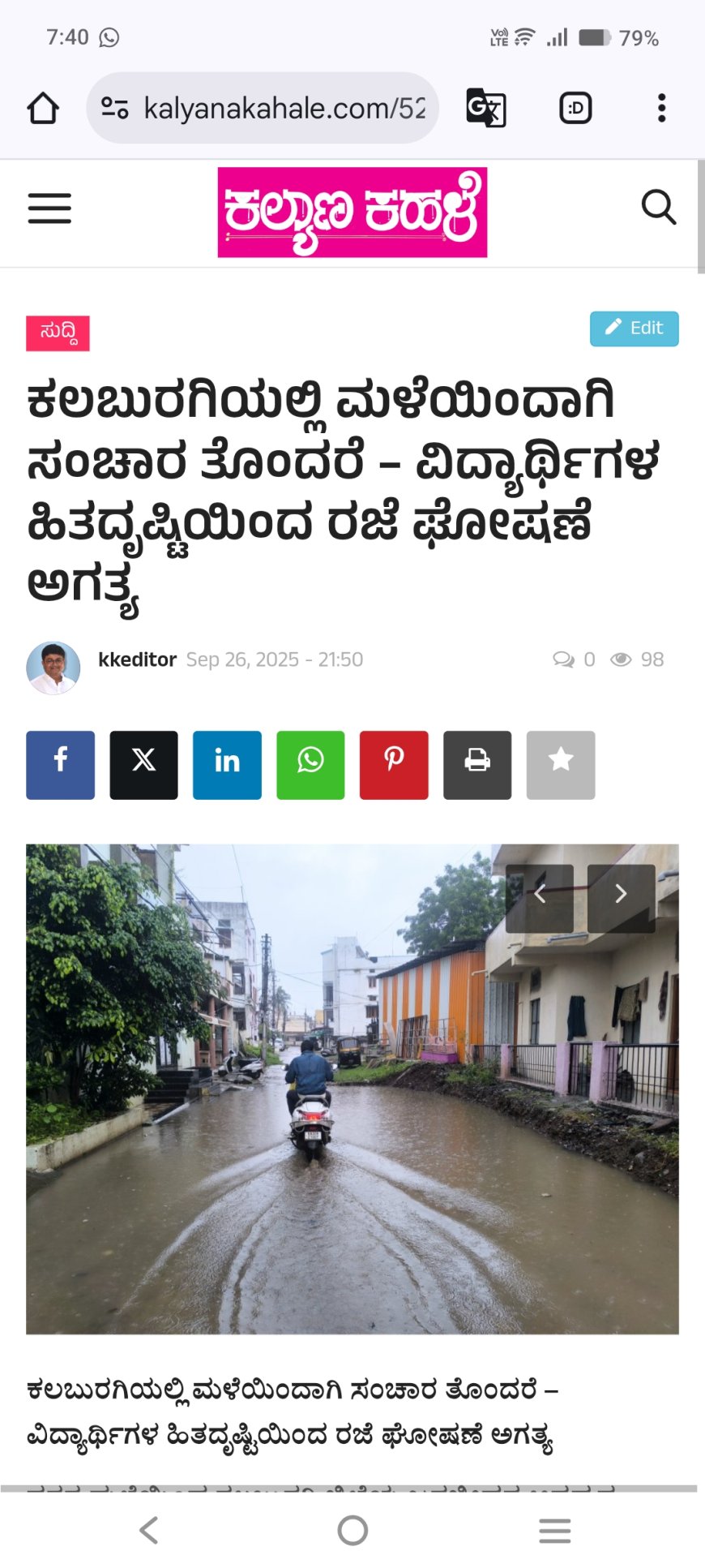 ಕಲ್ಯಾಣ ಕಹಳೆ ಪತ್ರಿಕೆ ನಿನ್ನೆ ರಾತ್ರಿ ವರದಿಮಾಡಿದಕ್ಕೆ ಸ್ಪಂದಿಸಿ ಪ್ರತಿಕ್ರಿಯಿಸಿ ತಕ್ಷಣ ಕ್ರಮ ಕೈಗೊಂಡಿರುವ ಜಿಲ್ಲಾ ಆಡಳಿತಕ್ಕೆ ‘ ಹಾಗೂ ಸಚಿವ ಪ್ರಿಯಾಂಕ್ ಖರ್ಗೆ ಅವರಿಗೆ ಸಾರ್ವಜನಿಕರಿಂದ ಹಾಗೂ ಪತ್ರಿಕೆ ಯಿಂದ ಧನ್ಯವಾದಗಳು