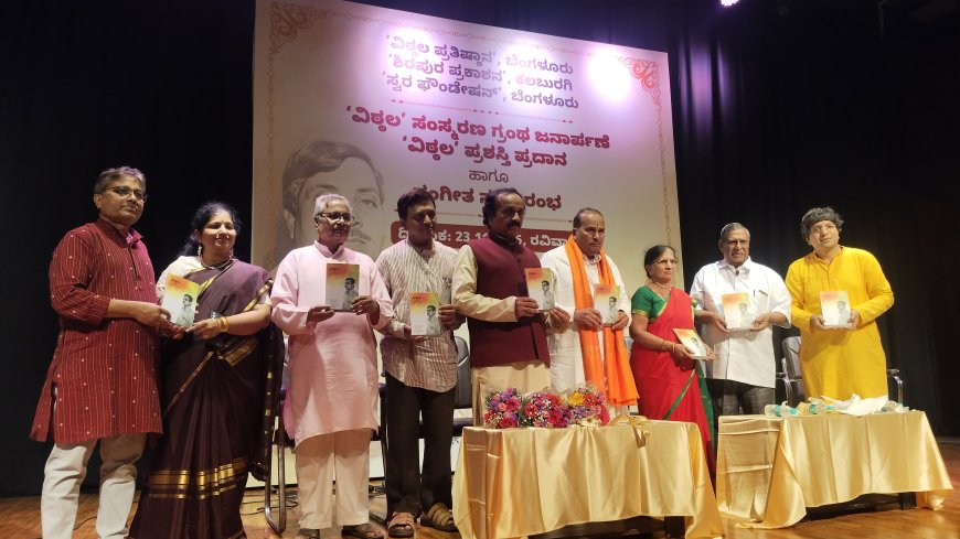 ಬೆಂಗಳೂರು: ಬಸವನಗುಡಿ ನಗರದ ಡಾ. ಸಿ. ಅಶ್ವಥ್ ಕಲಾಭವನದಲ್ಲಿ ವಿಠ್ಠಲ ಪ್ರತಿಷ್ಠಾನ ಕಲಬುರಗಿ, ಶಿರಪುರ ಪ್ರಕಾಶನ ಹಾಗೂ ಸ್ವರ ಫೌಂಡೇಶನ್ ಸಂಯುಕ್ತವಾಗಿ ಆಯೋಜಿಸಿದ್ದ “ವಿಠಲ” ಸಂಸ್ಮರಣ ಗ್ರಂಥ ಲೋಕಾರ್ಪಣೆ ಮತ್ತು ವಿಠ್ಠಲ ಪ್ರಶಸ್ತಿ ಪ್ರದಾನ ಸಮಾರಂಭ ಭಾನುವಾರ ಯಶಸ್ವಿಯಾಗಿ ನೆರವೇರಿತು.
