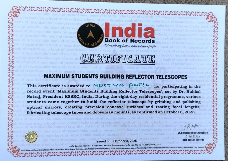 ಕಲಬುರಗಿ ಜಿಲ್ಲೆಯ ಕಾಳಗಿ ತಾಲ್ಲೂಕಿನ ಹುಲಗೇರಾ ಗ್ರಾಮದ 6–8ನೇ ತರಗತಿಯಲ್ಲಿ ಓದುತ್ತಿರುವ ಕುಮಾರ ಆದಿತ್ಯ ಪಾಟೀಲ ಹಾಗೂ ವಾಸು ಅವರು ಕರ್ನಾಟಕ ರಾಜ್ಯ ವೈಜ್ಞಾನಿಕ ಸಂಶೋಧನಾ ಪರಿಷತ್ ವತಿಯಿಂದ ದೊಡ್ಡಬಳ್ಳಾಪೂರದಲ್ಲಿ ನಡೆದ ಟೆಲಿಸ್ಕೋಪ್ ಮೇಕಿಂಗ್ ವರ್ಕ್ಶಾಪ್ನಲ್ಲಿ ಭಾಗವಹಿಸಿ ವರ್ಲ್ಡ್ ಬುಕ್ ಆಪ್ ರೆಕಾರ್ಡ್ ಸಾಧನೆ ಮಾಡಿರುವುದು ಸಂತಸ ತಂದಿದೆ ಎಂದು ಅವರು ಹೇಳಿದರು.