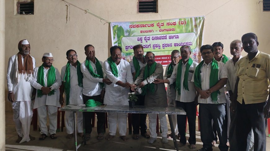 ತಾಲೂಕಿನ ಪಾಳಾ ಗ್ರಾಮದ ಶರಣಬಸವೇಶ್ವರ ಸಂಸ್ಥಾನದಲ್ಲಿ ನವ ಕರ್ನಾಟಕ ರೈತ ಸಂಘ ಬೆಂಗಳೂರು–ಕಲಬುರಗಿ ವತಿಯಿಂದ 2025–26ನೇ ಸಾಲಿನ ವಿಶ್ವ ರೈತ ದಿನಾಚರಣೆ, ರೈತರ ವಿಶೇಷ ಹಬ್ಬ ಹಾಗೂ ರಾಜ್ಯಮಟ್ಟದ ಪ್ರಶಸ್ತಿ ಪ್ರದಾನ ಸಮಾರಂಭವು ಬುಧವಾರ ಅದ್ದೂರಿಯಾಗಿ ನಡೆಯಿತು. ಕಾರ್ಯಕ್ರಮದ ಅಧ್ಯಕ್ಷತೆ ವಹಿಸಿ ಮಾತನಾಡಿದ ದಯಾನಂದ ಪಾಟೀಲ ಅವರು, ರೈತರ ಹಿತ ರಕ್ಷಣೆಗೆ ಸಂಘ ಸದಾ ಹೋರಾಟ ಮಾಡಲಿದೆ. ರೈತರ ಏಳಿಗೆಗಾಗಿ ಹಗಲಿರಳು ಶ್ರಮಿಸುವೆನೆಂದು ಭರವಸೆ ನೀಡಿದರು.