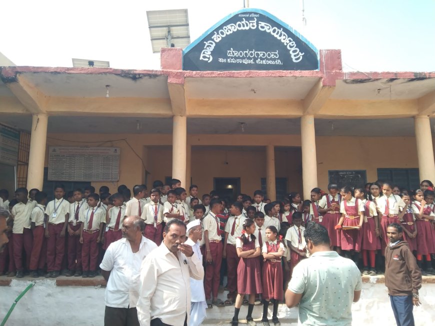 ಡೊಂಗರಗಾಂವ ಮಹಾತ್ಮಾ ಬಸವೇಶ್ವರ ಶಾಲಾ ಮಕ್ಕಳ ಅಳಲು: ಚರಂಡಿ ದಾಟಿ ಶಾಲೆಗೆ ಹೋಗುವ ದುಸ್ಥಿತಿ – ಗ್ರಾಮ ಪಂಚಾಯತ್ ಮುತ್ತಿಗೆ ಹಾಕಿ ಪ್ರತಿಭಟನೆ