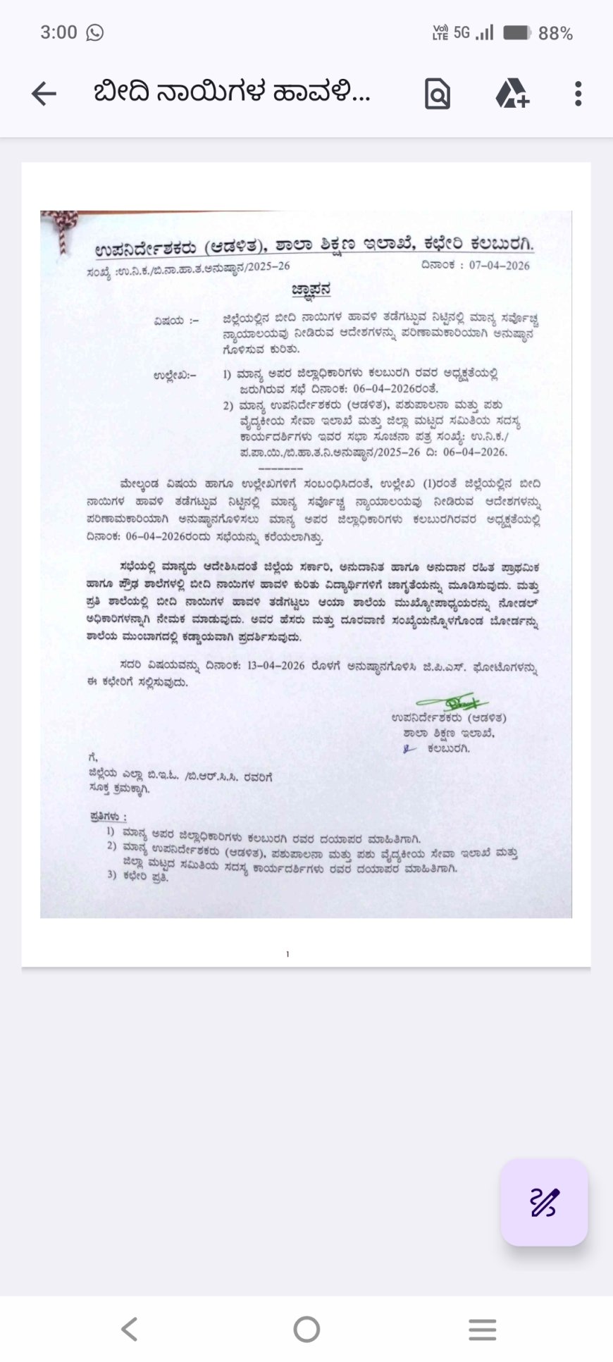 ಉಪನಿರ್ದೇಶಕರು (ಆಡಳಿತ), ಶಾಲಾ ಶಿಕ್ಷಣ ಇಲಾಖೆ, ಕಲಬುರಗಿರವರು ಆದೇಶ ಹೊರಡಿಸಿದ್ದಾರೆ.